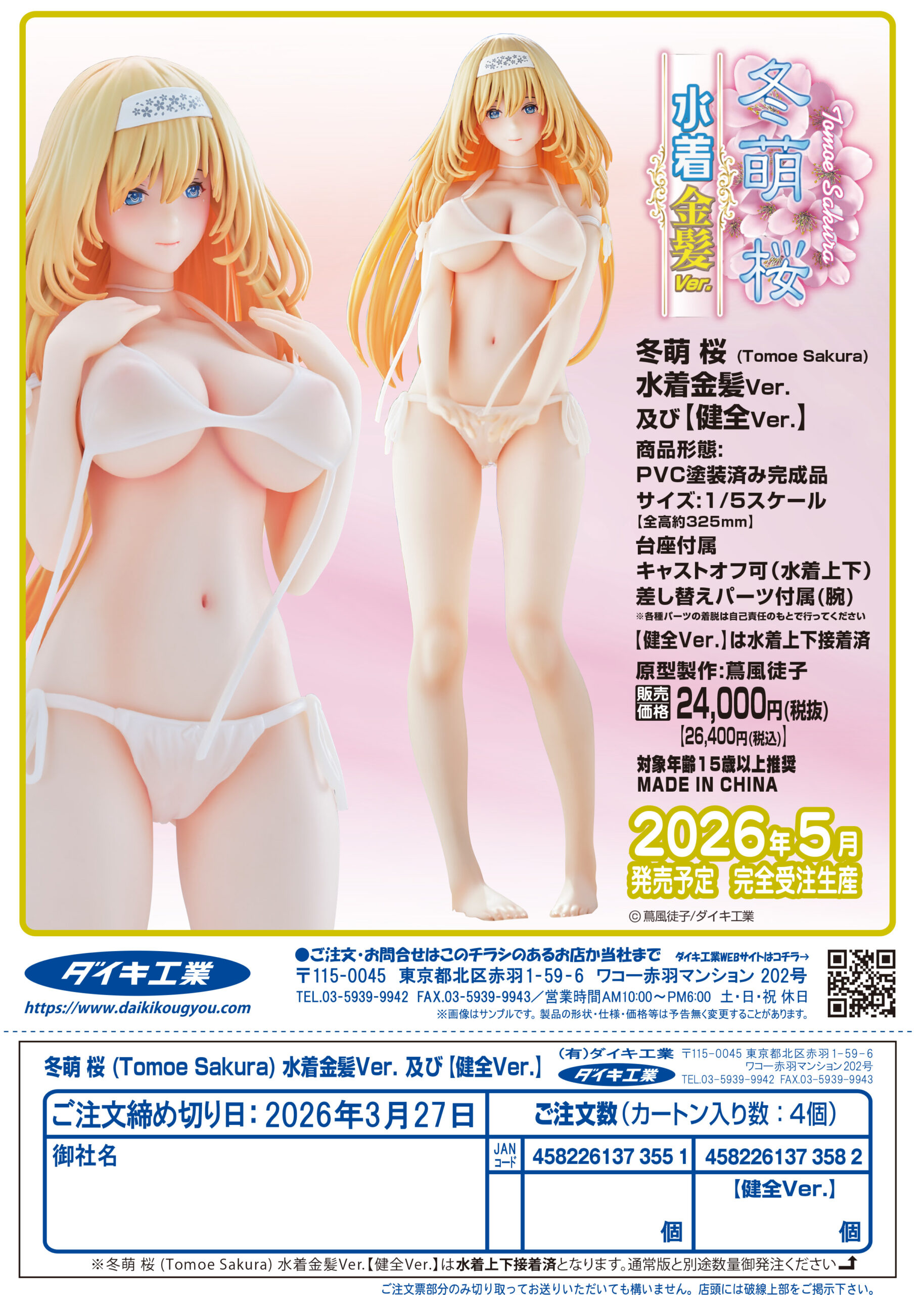 | ■好評を博した2023年6月発売の『冬萌 桜 (Tomoe Sakura)』が 金髪&sexyな水着を装い新たなカラーバリエーションとなって登場! 「こっ今度は水着撮影会ですか…!?エッチなのはダメですからねっ!!キャ!!」 |