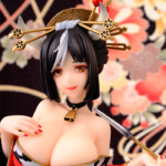 | ■華麗な造形を手掛ける原型師・乙山法純氏のイベント限定販売ガレージキット干支娘より「牛歩さん」を、明智逸鶴氏(大正堂)が彩色を担当してダイキ工業から登場! 紅色の着物に白黒斑模様の帯、キセルから出る甘い香り。首元のカウベルより下に目を向ければ巨大な毬が2つ…「あちきをご指名でござんすか、お兄さん。ようござんす…」 |